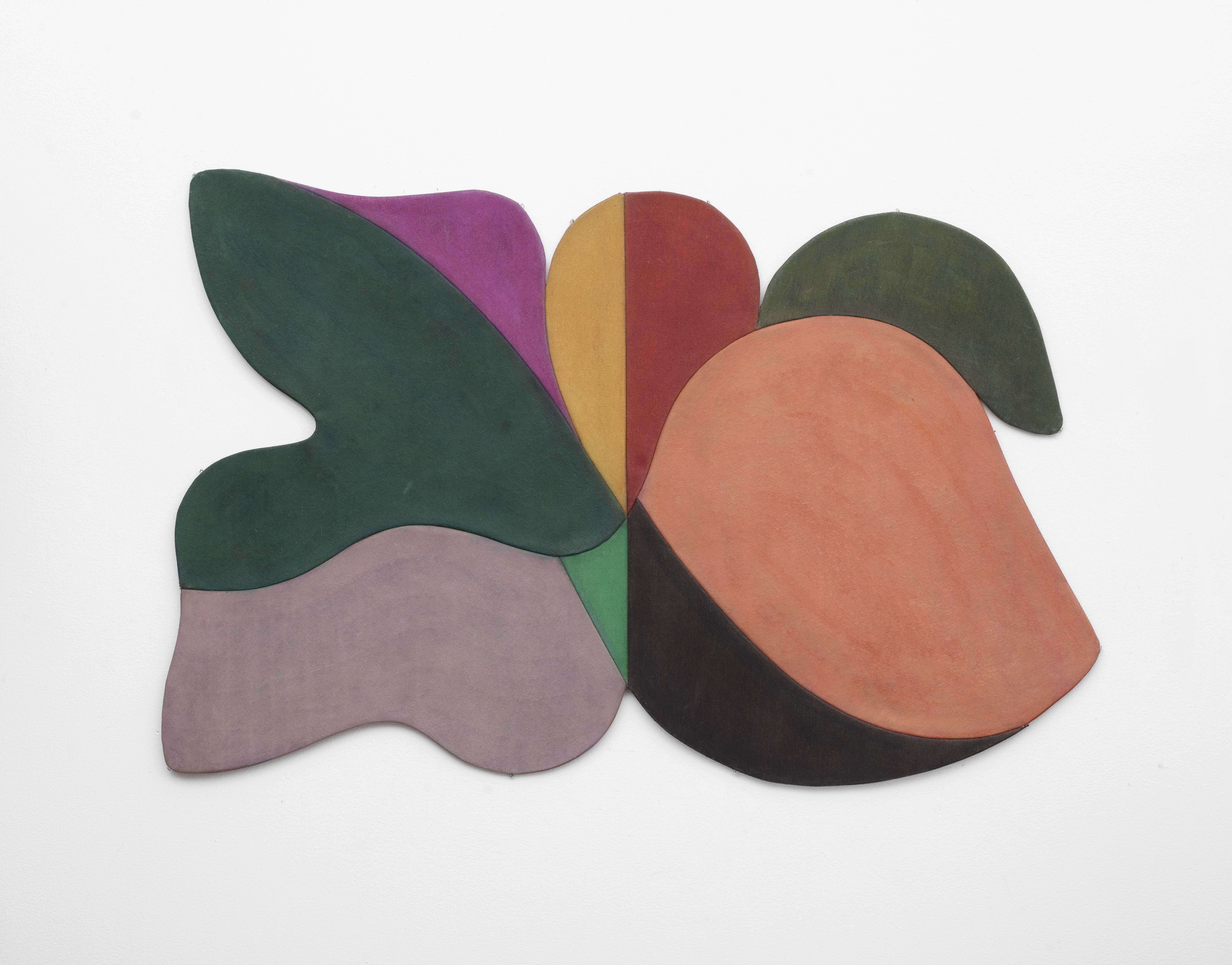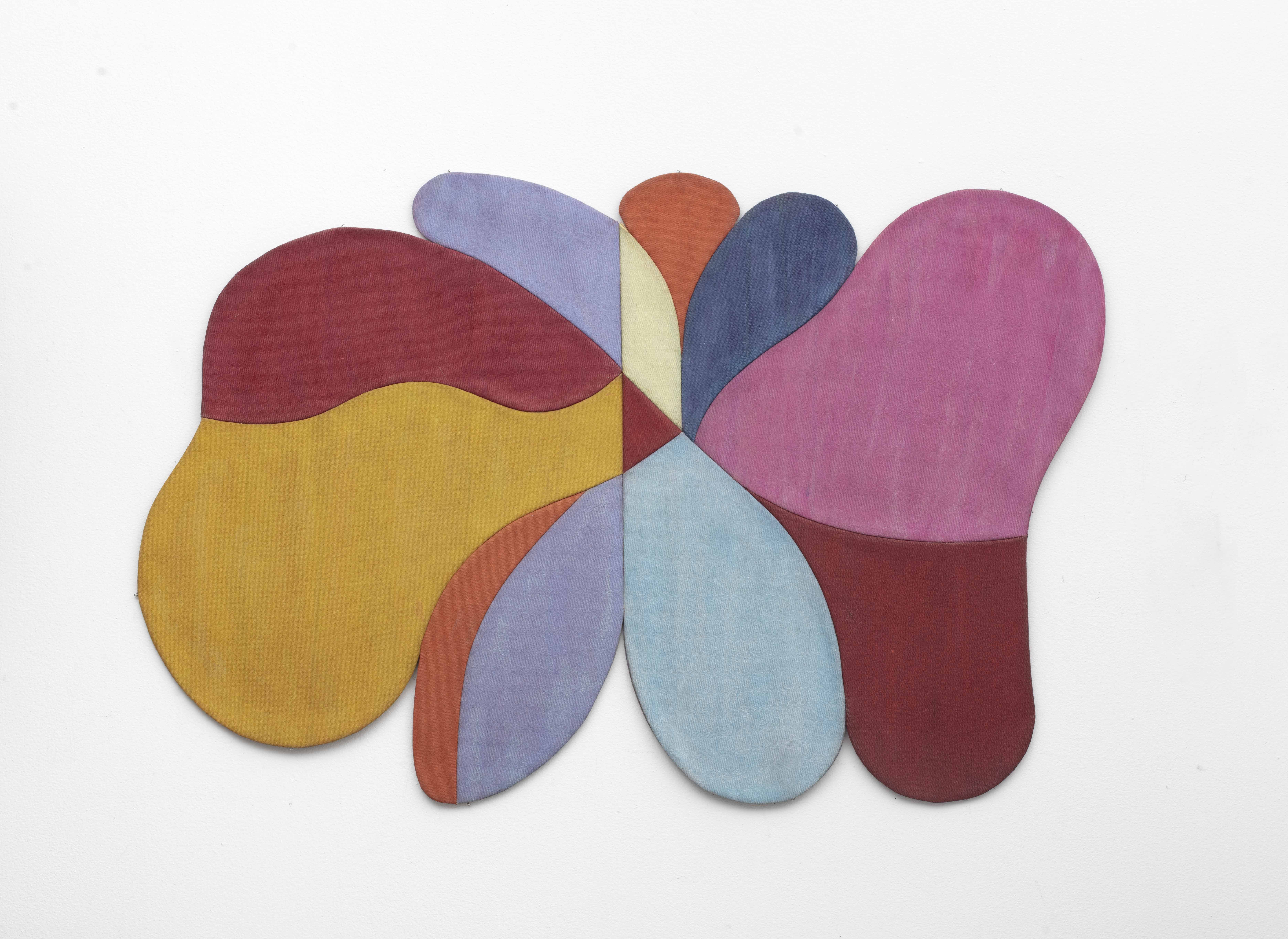 acrylic on natural denim, upholstery thread, industrial felt, cotton duck, hardware